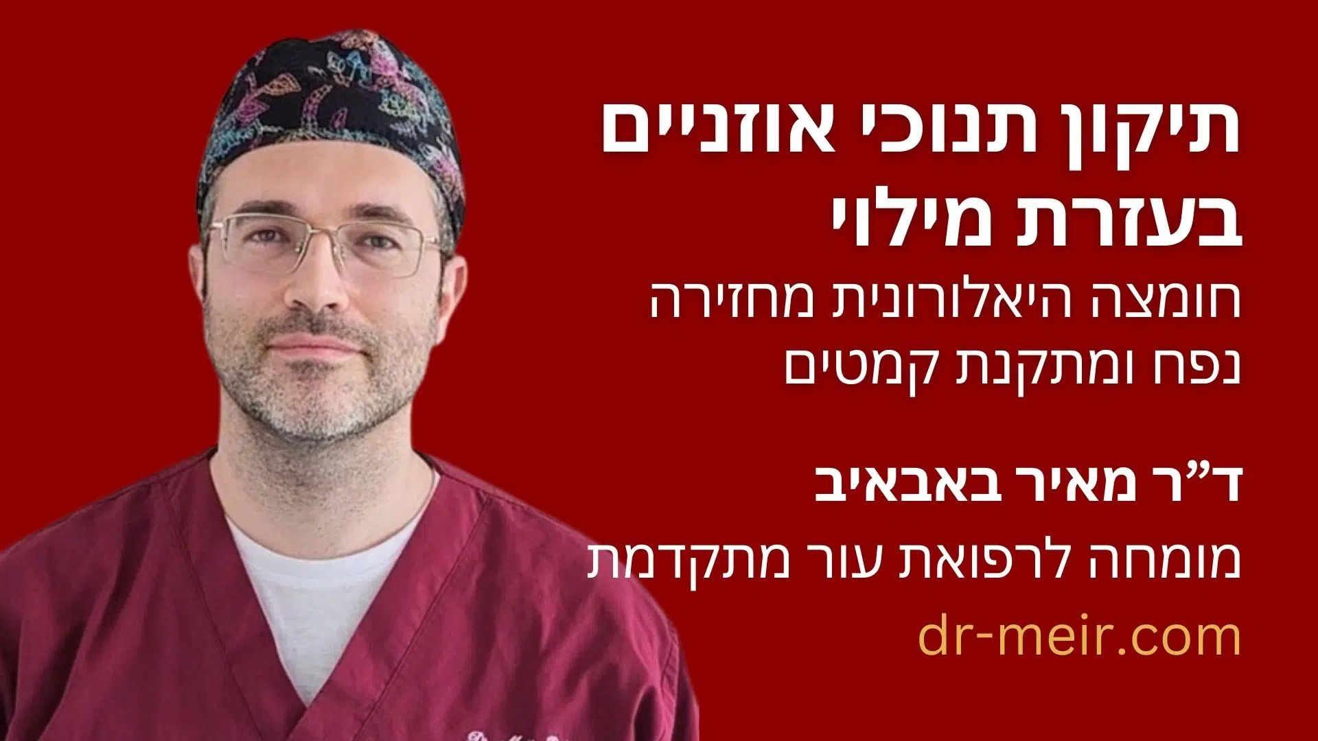 המחיר משתנה בהתאם לכמות חומר המילוי הנדרשת ולמצב התנוכים. פגישת ייעוץ עם ד"ר מאיר באבאיב תספק הצעת מחיר מותאמת אישית.