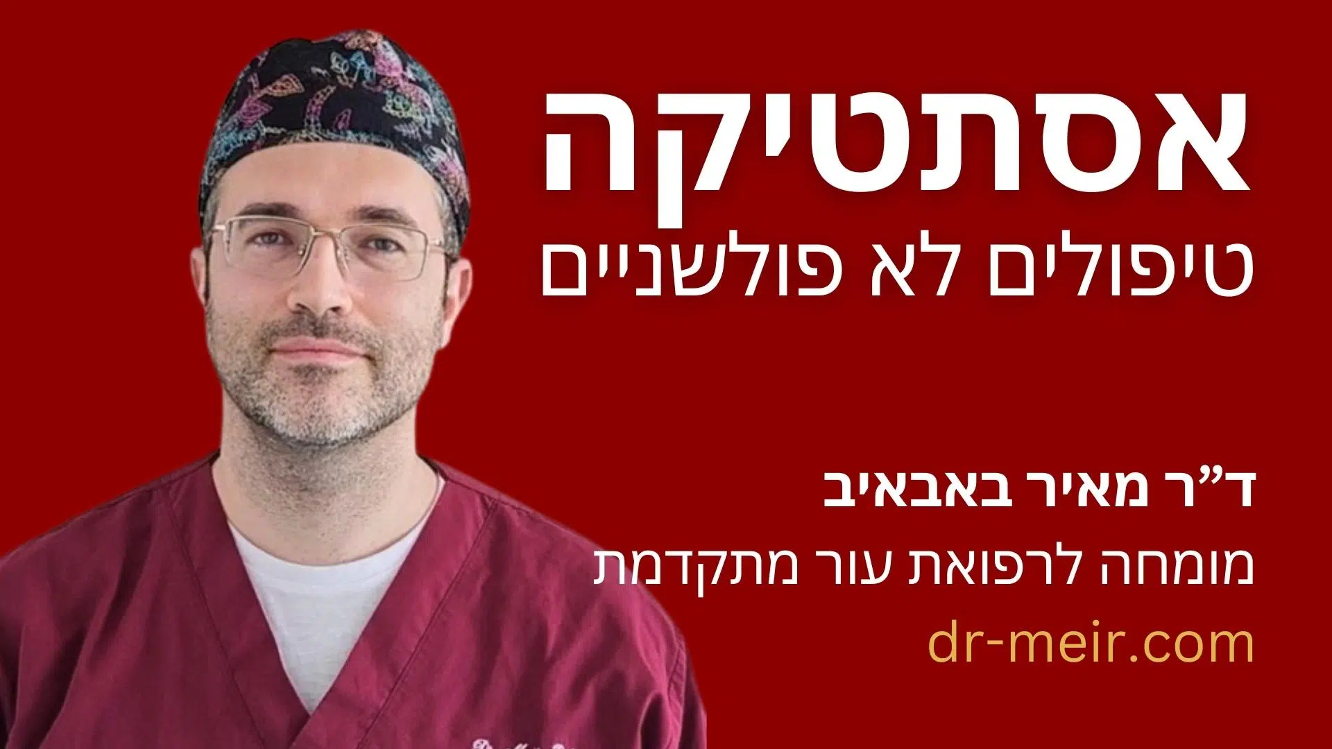 ד"ר מאיר באבאיב, רופא עור מומחה עם ניסיון של 15 שנה בתחום האסתטיקה הרפואית, מוביל את המהפכה של טיפולים לא פולשניים בקליניקה הפרטית שלו במתחם עזריאלי לעסקים בחולון. המומחיות שלו באסתטיקה, פיסול פנים וחדשנות ללא ניתוחים, שאיבות שומן ונשירת שיער, לצד מעל 20 דיפלומות והשתתפות פעילה בכנסים מקצועיים בארץ ובעולם, הופכים אותו לאחד הרופאים המובילים בתחום הטיפולים האסתטיים המתקדמים.